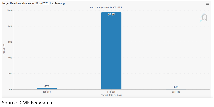 This upward pressure on inflation has destroyed the market’s hopes for a rate cut. It was previously anticipated that the Fed would cut rates by 25 basis points in July, but now the market is pricing in a 97.5% chance of rates holding steady.